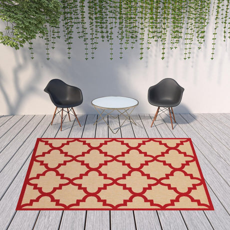 4' X 5' Red Geometric Stain Resistant Indoor Outdoor Area Rug