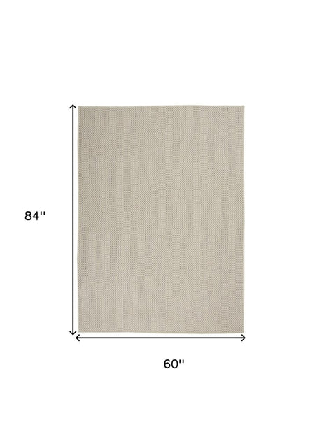 7' X 10' Ivory And Silver Indoor Outdoor Area Rug