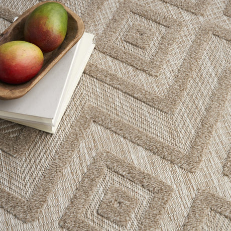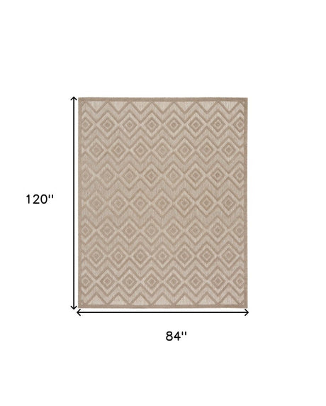 7' X 10' Beige and Black Geometric Stain Resistant Indoor Outdoor Area Rug