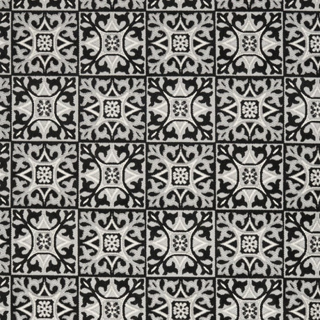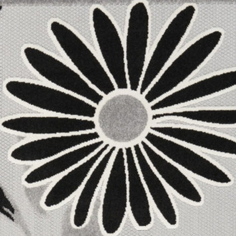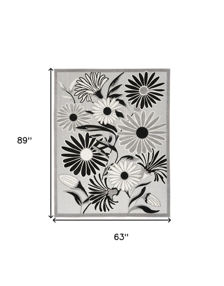 5' X 8' Black And White Floral Stain Resistant Non Skid Area Rug