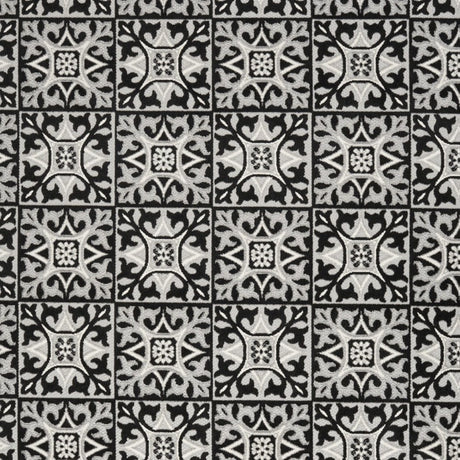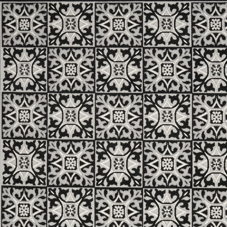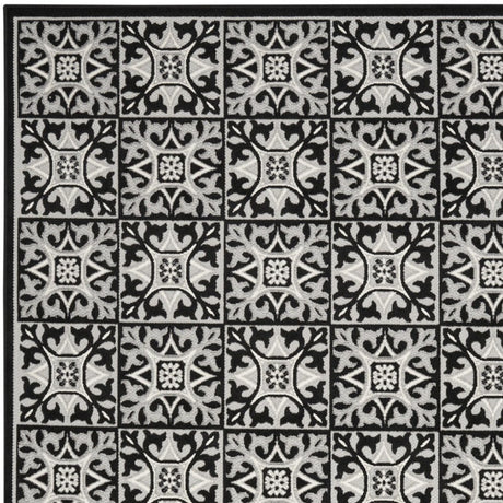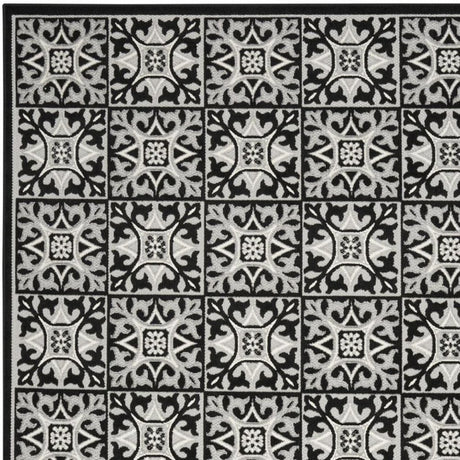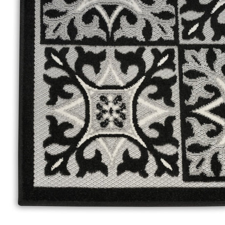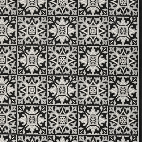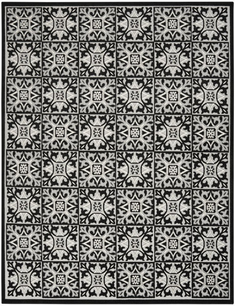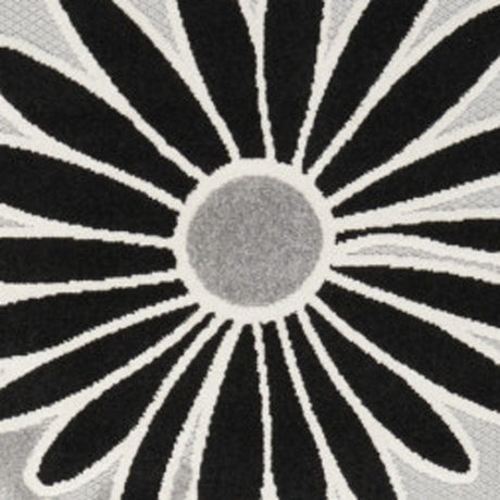 8' X 11' Black and White Floral Non Skid Indoor Outdoor Area Rug