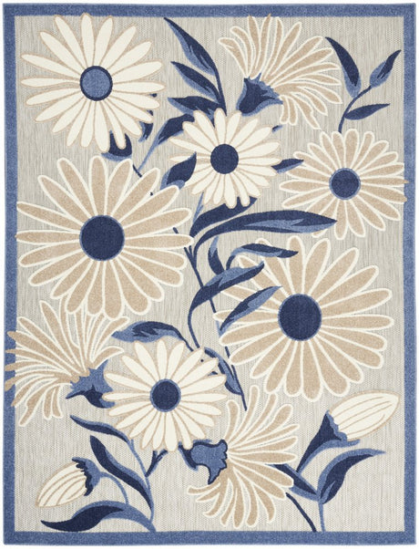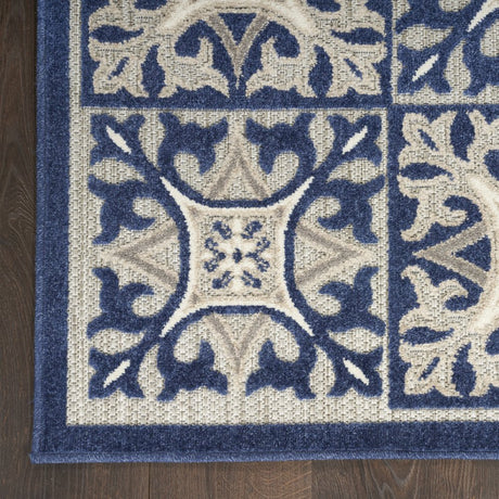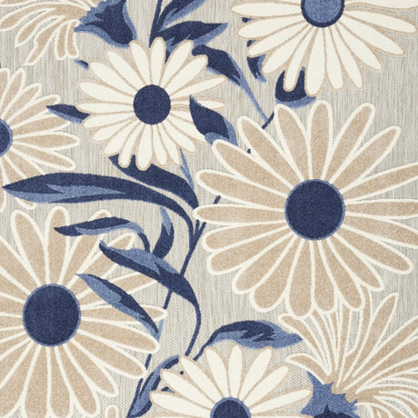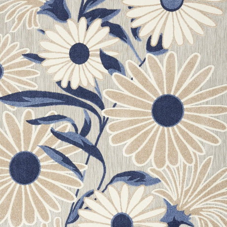8' X 11' Blue and Gray Floral Non Skid Indoor Outdoor Area Rug
