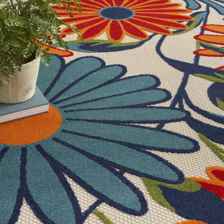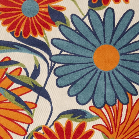 8' X 11' Ivory Blue and Orange Floral Non Skid Indoor Outdoor Area Rug