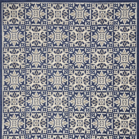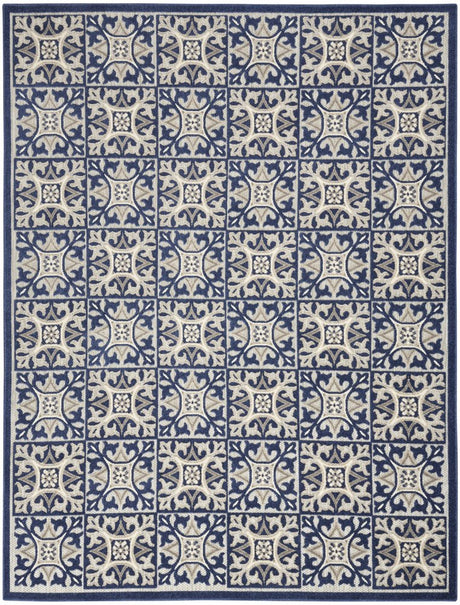 8' X 11' Blue Geometric Non Skid Indoor Outdoor Area Rug