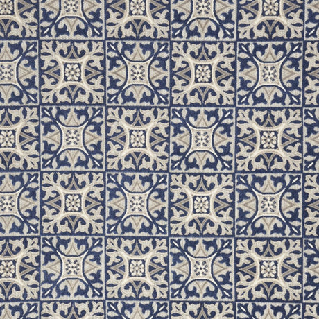 5' X 8' Blue Fleur De Lis Stain Resistant Non Skid Area Rug