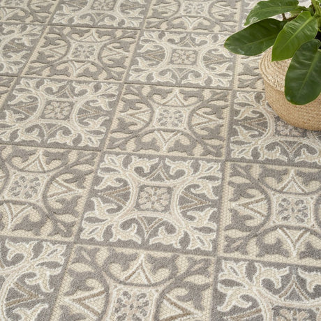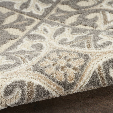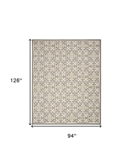 8' X 11' Ivory and Gray Geometric Non Skid Indoor Outdoor Area Rug