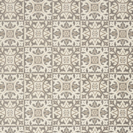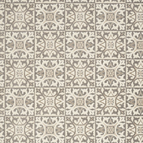 7' X 10' Ivory And Grey Fleur De Lis Stain Resistant Non Skid Area Rug