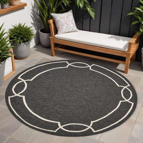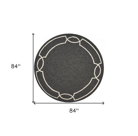 7' Onyx And Ivory Round Geometric Handmade Indoor Outdoor Area Rug