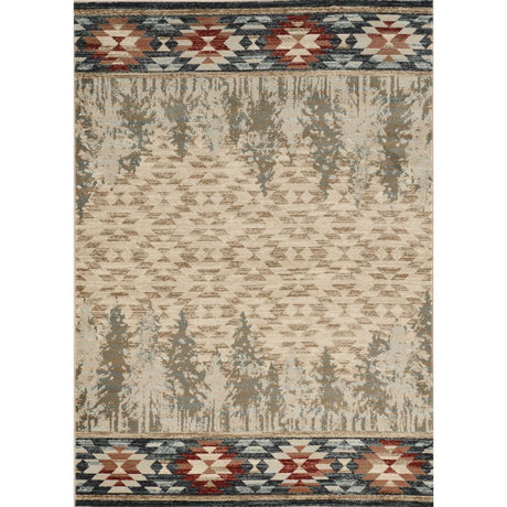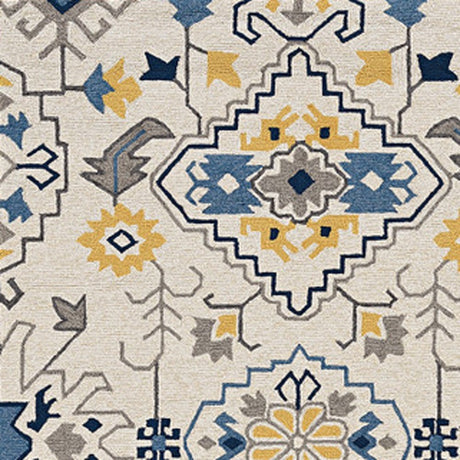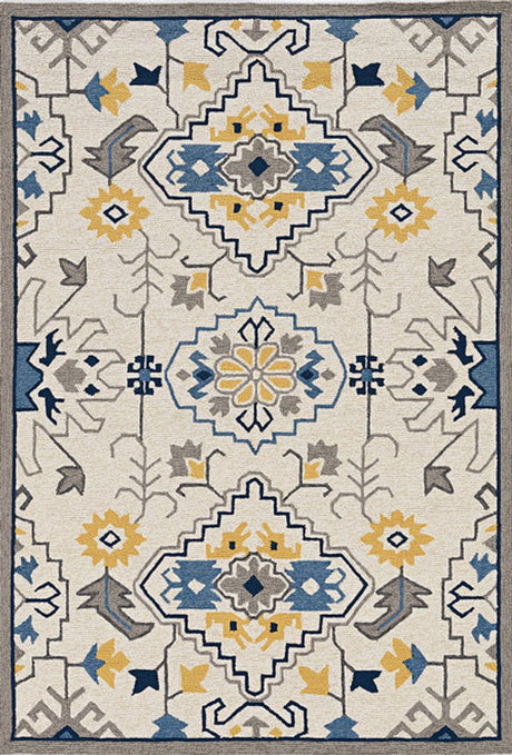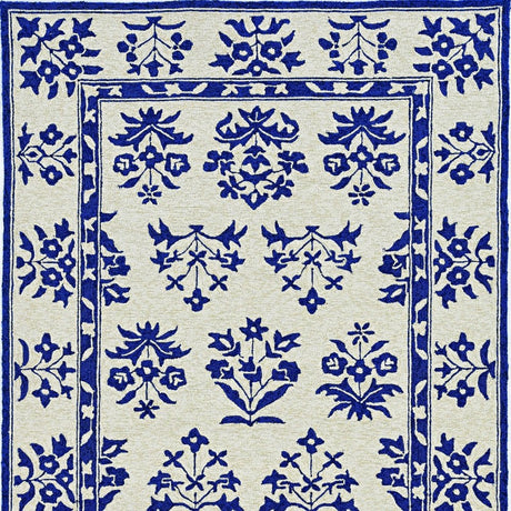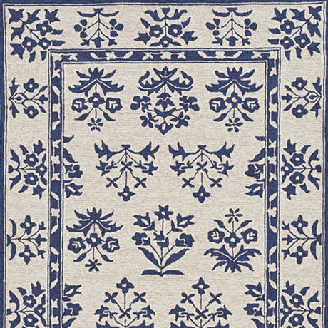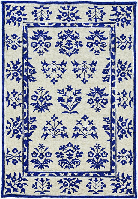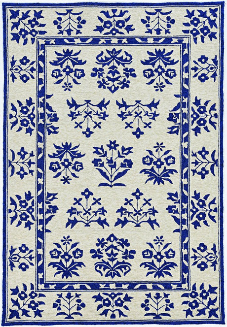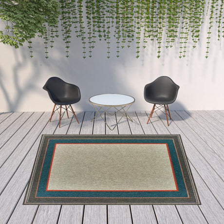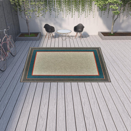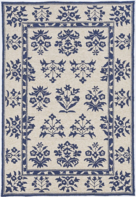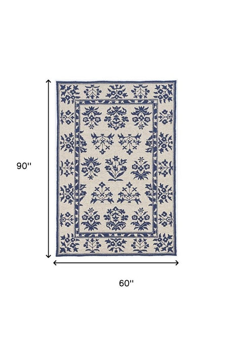 5' X 7' Sand Or Blue Floral Bordered Indoor Outdoor Area Rug