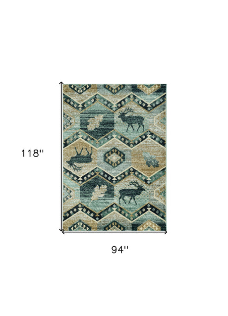 8' X 10' Blue and Gray Stain Resistant Indoor Outdoor Area Rug