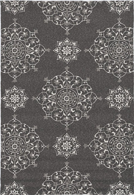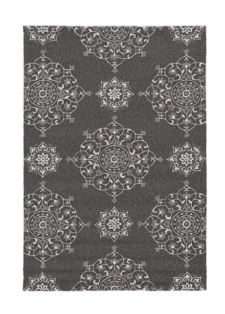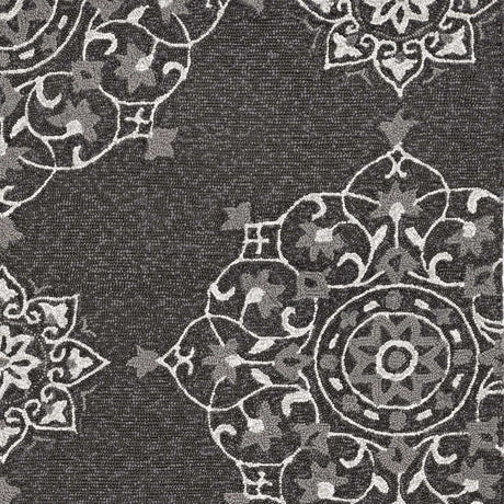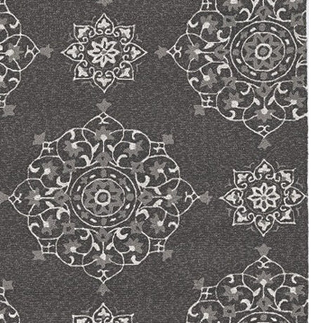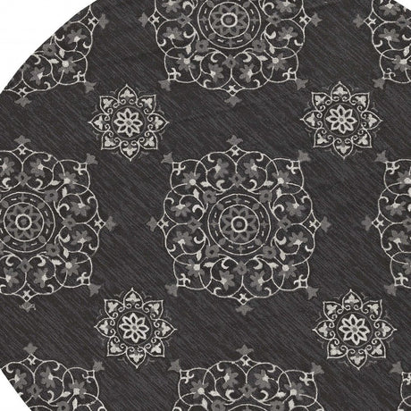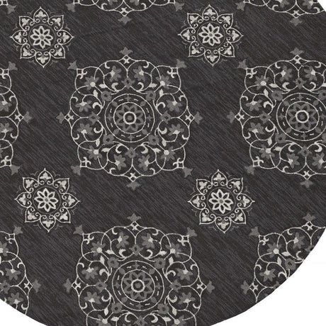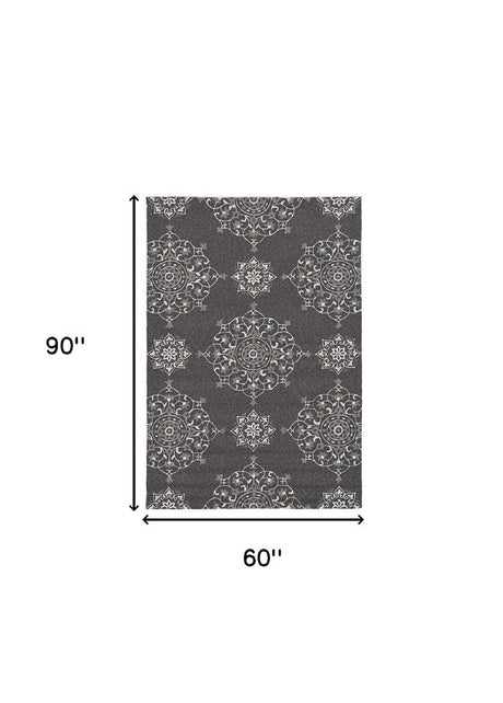 5' X 8' Charcoal Round Floral Indoor Outdoor Area Rug