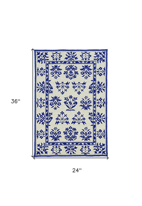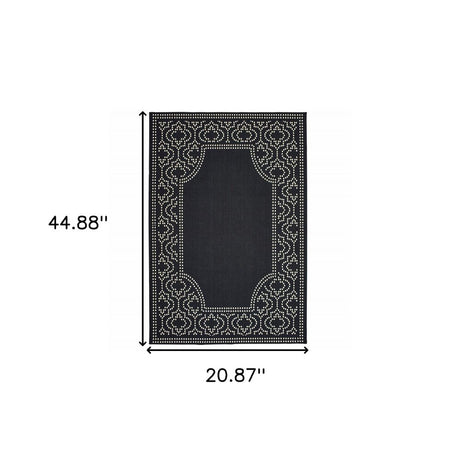2' X 4' Black and Ivory Stain Resistant Indoor Outdoor Area Rug
