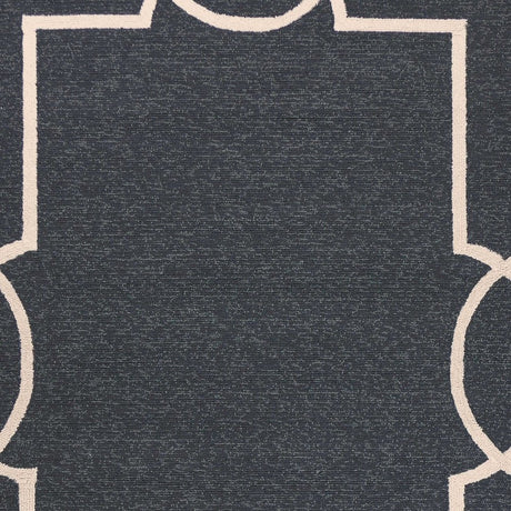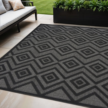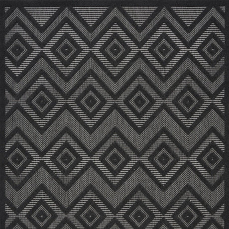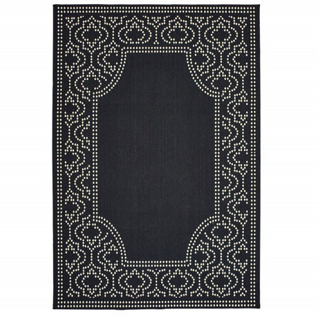 7' X 10' Black and Ivory Stain Resistant Indoor Outdoor Area Rug