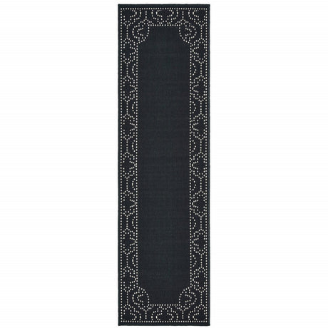 2' X 8' Black and Ivory Stain Resistant Indoor Outdoor Area Rug