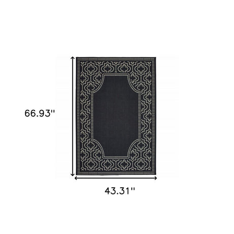 5' X 8' Black and Ivory Stain Resistant Indoor Outdoor Area Rug
