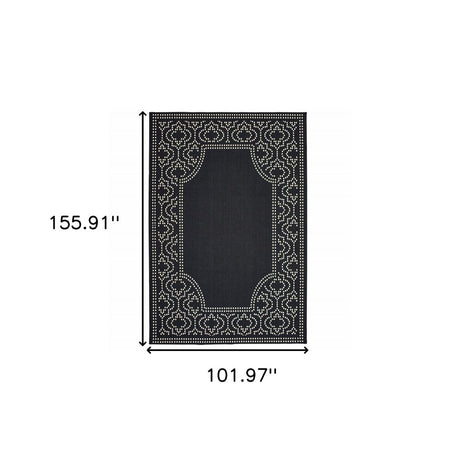 8' X 11' Black and Ivory Stain Resistant Indoor Outdoor Area Rug