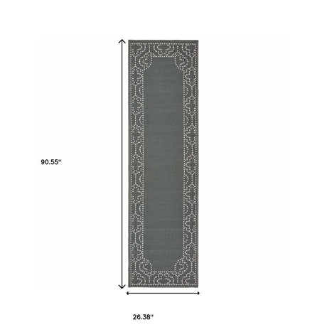 2' X 8' Gray and Ivory Stain Resistant Indoor Outdoor Area Rug