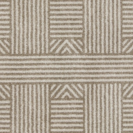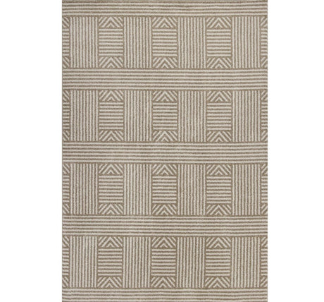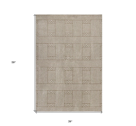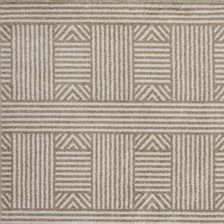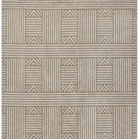 7' X 9' Beige And Ivory Geometric Indoor Outdoor Area Rug