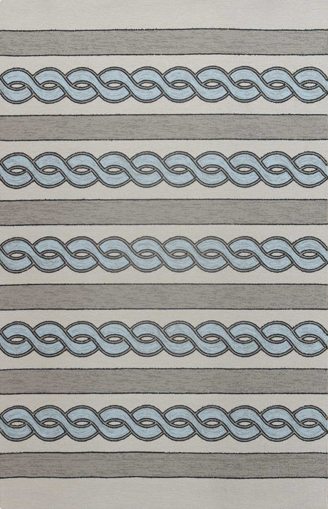 5' X 7' Ivory and Blue Abstract Indoor Outdoor Area Rug