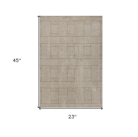 2' X 3' Blue and Beige Geometric Stain Resistant Indoor Outdoor Area Rug