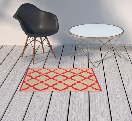2' X 3' Pink Geometric Stain Resistant Indoor Outdoor Area Rug