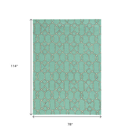 7' X 10' Green Moroccan Indoor Outdoor Area Rug