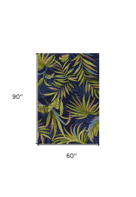 5' X 8' Blue Floral Indoor Outdoor Area Rug