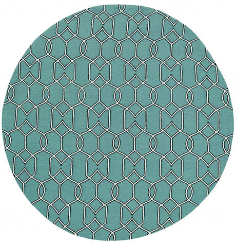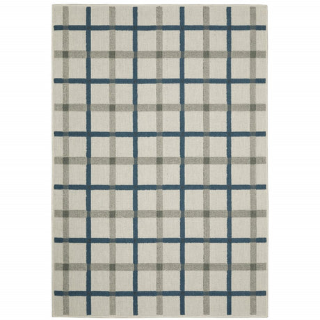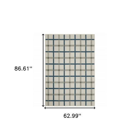 5' X 7' Blue and Beige Geometric Stain Resistant Indoor Outdoor Area Rug