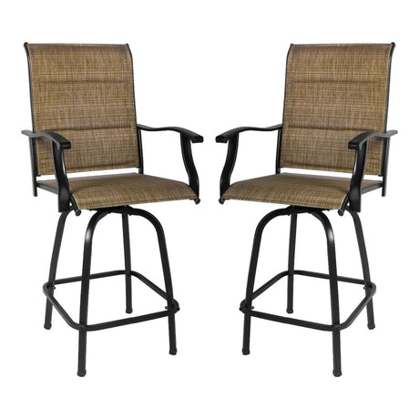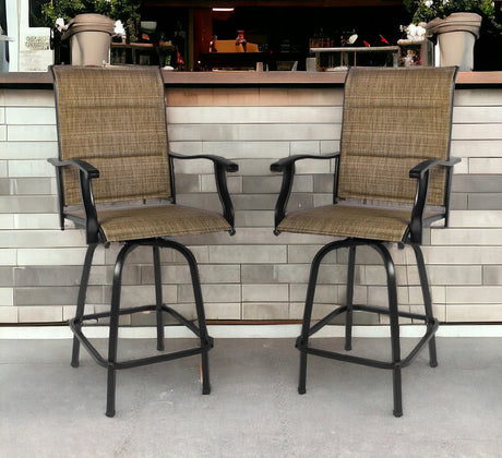 Set of Two 51" Brown Swivel Indoor Outdoor Bar Height chairs with Footrest