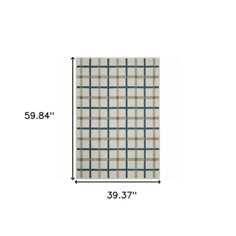 3' X 5' Blue and Beige Geometric Stain Resistant Indoor Outdoor Area Rug