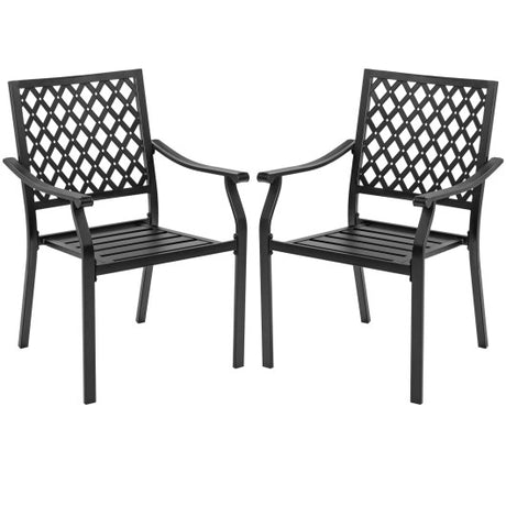 Set of 2 Patio Dining Chairs with Curved Armrests and Reinforced Steel Frame