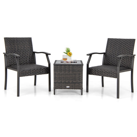 3 Piece Patio Wicker Chair Set with Quick-drying Cushions