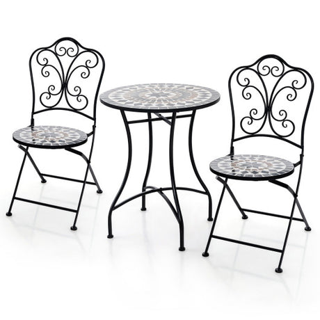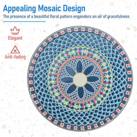 3 Piece Patio Bistro Set with Mosaic Pattern