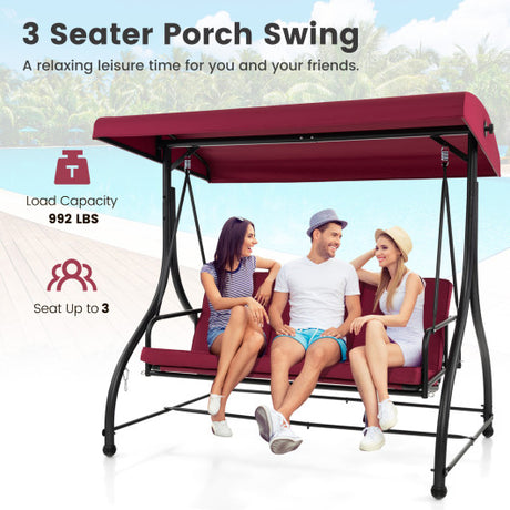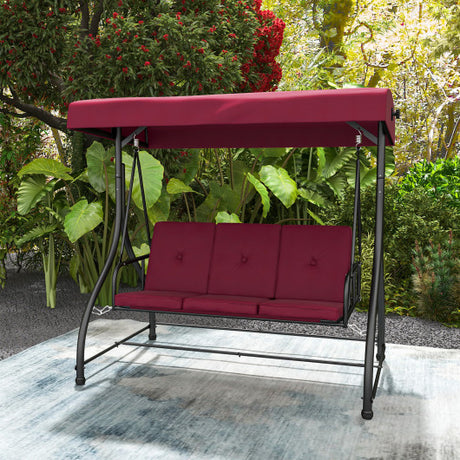 3 Seat Outdoor Porch Swing with Adjustable Canopy-Wine