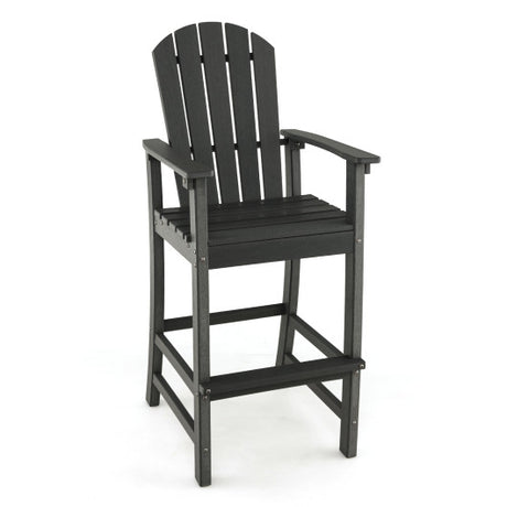 30 Inches Counter Height Outdoor HDPE Bar Stool with Armrests and Footrest-Black