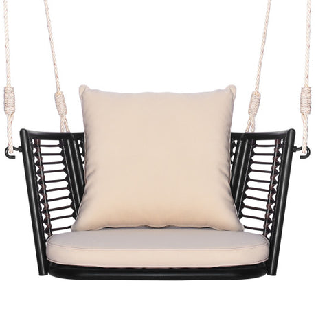 Single Person Hanging Seat with Woven Rattan Backrest for Backyard