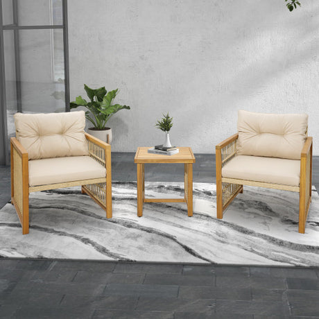 4 Pieces Acacia Wood Patio Conversation Table and Chair Set with Hand Woven Rope