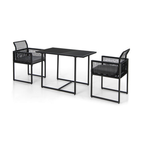 3 Pieces Outdoor Dining Set with Folding Backrest and Seat Cushions-Black