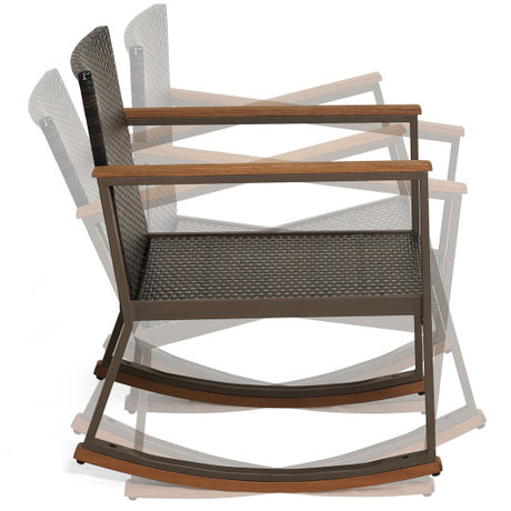 Outdoor Patio PE Wicker Rocking Chair with Armrests and Metal Frame-Gray
