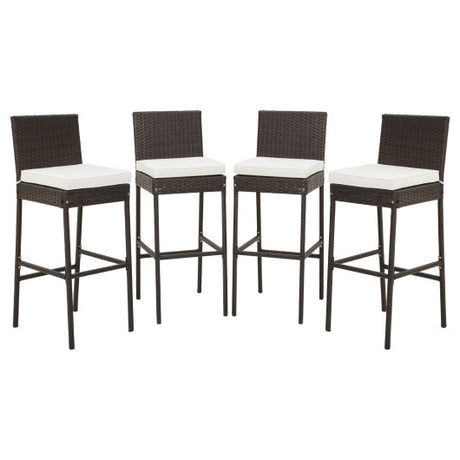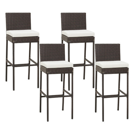 4 Pieces Patio Wicker Barstools with Seat Cushion and Footrest-Set of 4