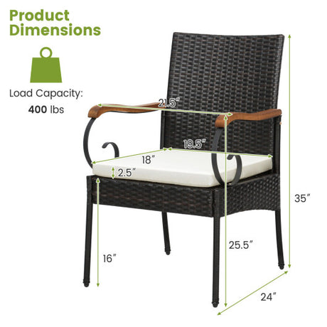 5 Pieces Patio Wicker Cushioned Dining Set with Wood Armrest and Umbrella Hole