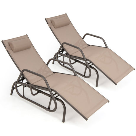 Outdoor Chaise Lounge Glider Chair with Armrests and Pillow-Rustic Brown