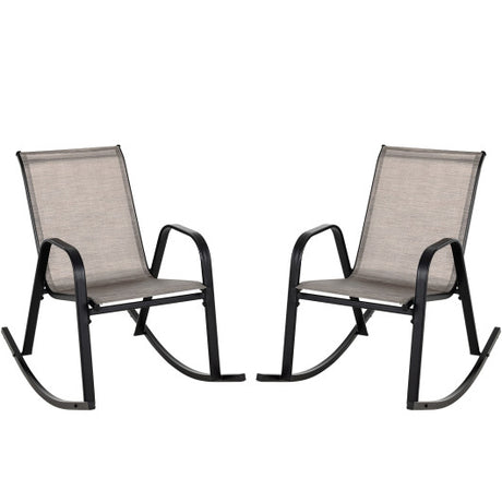 Set of 2 Heavy-Duty Metal Patio Rocking Chair with Breathable Seat Fabric-Brown