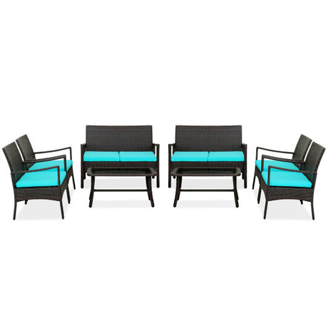 4 Pieces Rattan Conversation Set with Tempered Glass Coffee Table-Turquoise