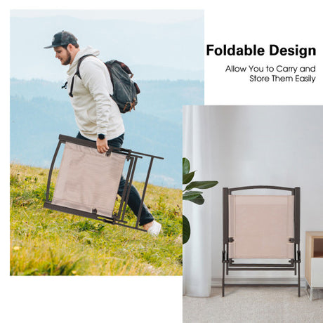 2 Pieces Outdoor Folding Chair Set with Sturdy Frame and Ergonomic Backrest-Black