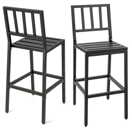 Set of 2 Patio Bar Chairs with Detachable Cushion and Footrest-Vertical Stripes