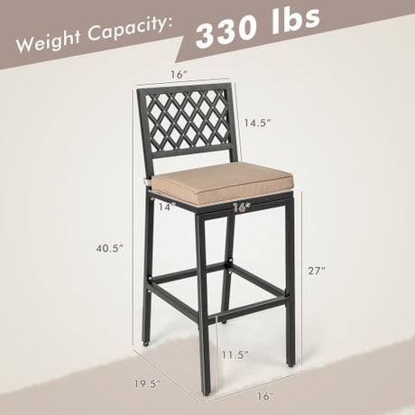 Set of 2 Patio Bar Chairs with Detachable Cushion and Footrest-Argyle Pattern