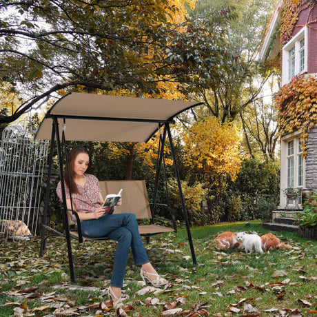 2-Seat Outdoor Canopy Swing with Comfortable Fabric Seat and Heavy-duty Metal Frame-Beige