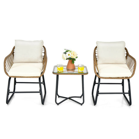 3-Piece Patio Bistro Set with 2 Rattan Chairs and Square Glass Coffee Table-White