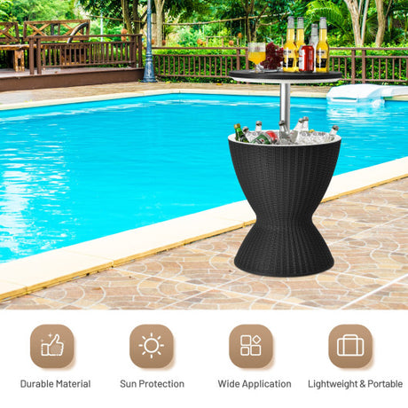 3 in 1 8 Gallon Patio Rattan Cooler Bar Table with Adjust Ice Bucket-Black